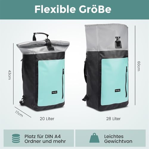 • 28L Stauraum: Flexibler Stauraum von 21L bis 28L, perfekt für Einkäufe und Sportausrüstung.