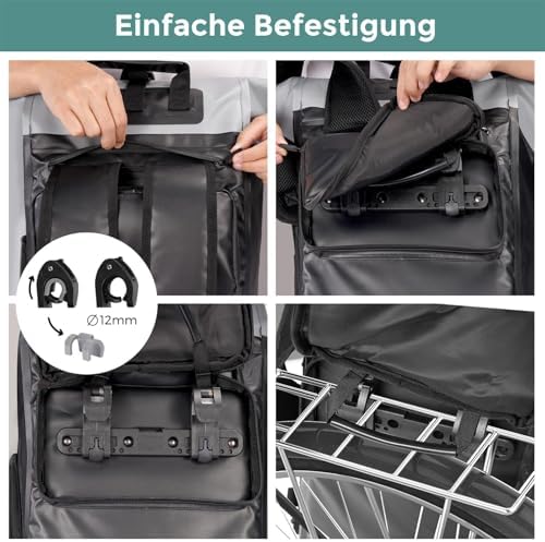 • 2-in-1 Design: Flexibler Alltagsrucksack, der sich in eine stabile Fahrradtasche verwandelt, ideal für Pendler.