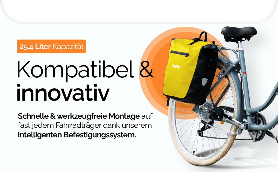 Dank des smarten, variablen Befestigungssystems lässt sich die Radtasche problemlos an nahezu jedem Gepäckträger montieren. Sie erhalten drei Adapter, die für Gepäckträger mit Durchmessern von 8, 11 und 15 mm geeignet sind. Dies bedeutet, dass die Tasche sich flexibel an Ihre Bedürfnisse und Ihr Fahrrad anpasst und somit ein zuverlässiger Begleiter für Ihre Fahrradtouren ist.