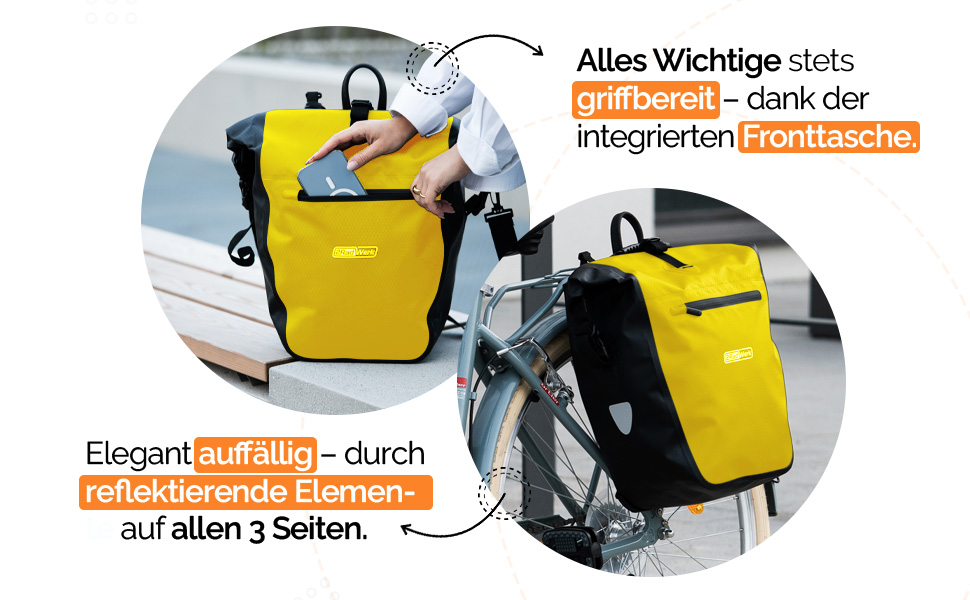 Wenn Sie eine robuste, vielseitige und geräumige Tasche suchen, die sich leicht an verschiedenen Szenarien anpassen lässt, treffen Sie mit dieser Radtasche die richtige Wahl. Perfekt für alle, die einen aktiven Lebensstil pflegen und zugleich Wert auf Komfort und praktische Lösungen legen. Lassen Sie sich von der Qualität und Funktionalität überzeugen und bringen Sie Ordnung in Ihr Leben!