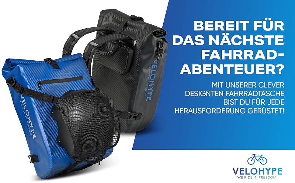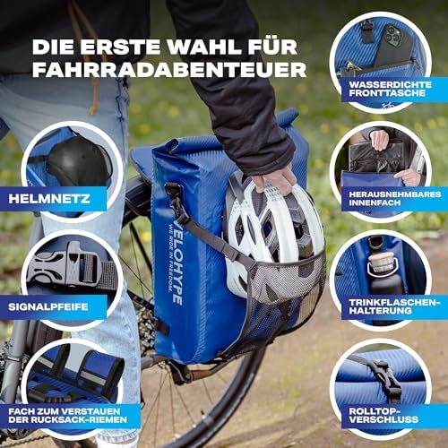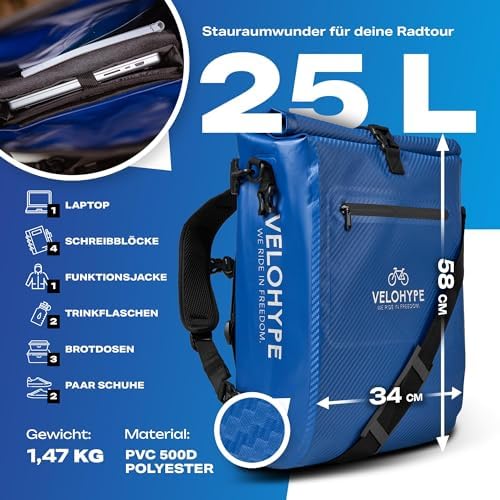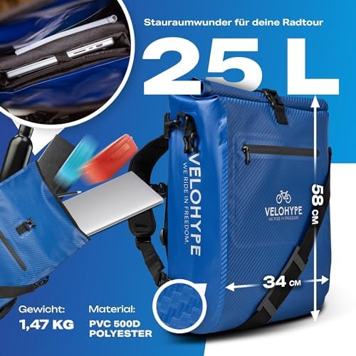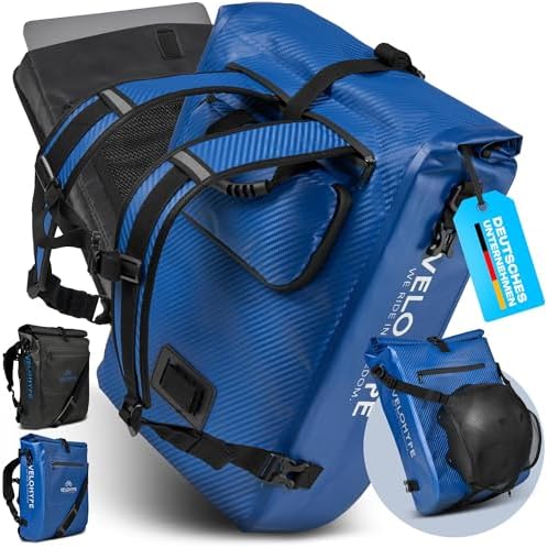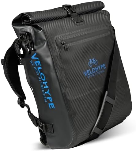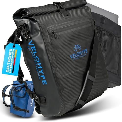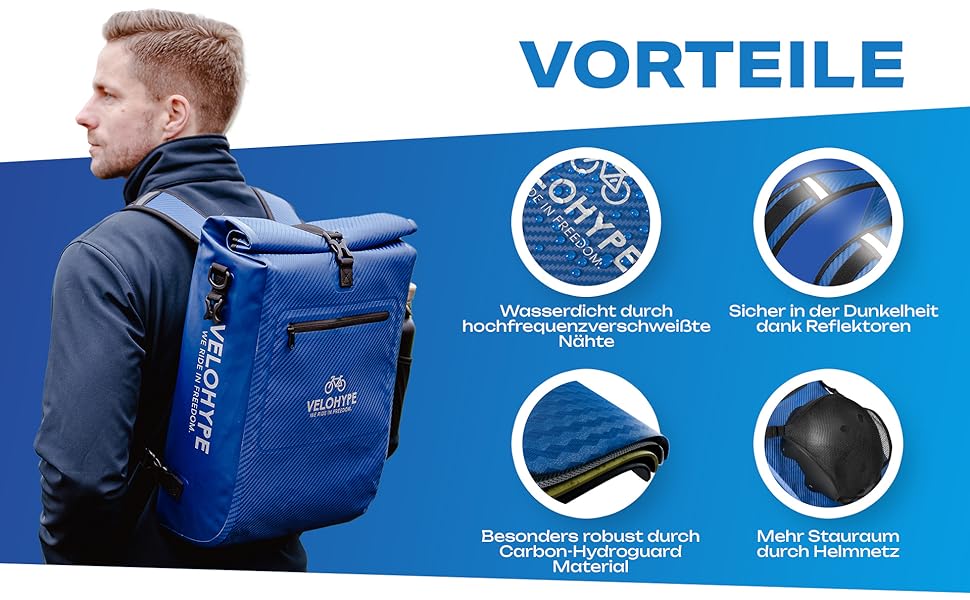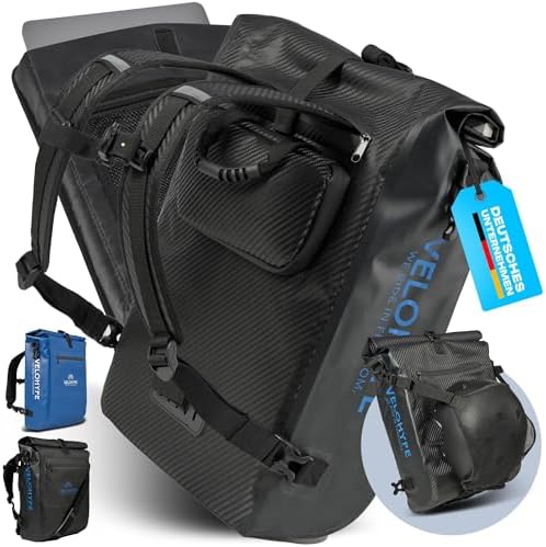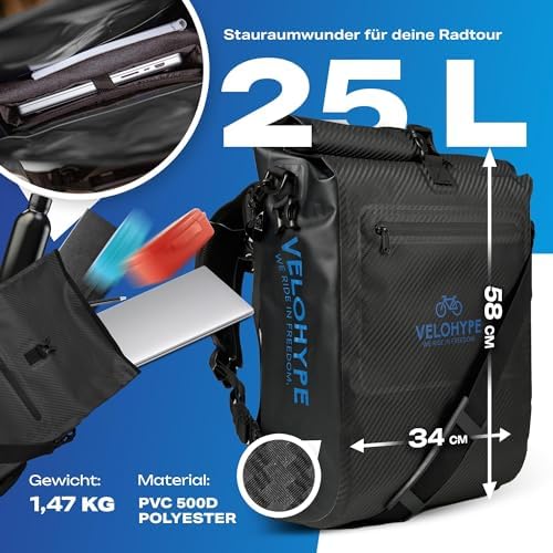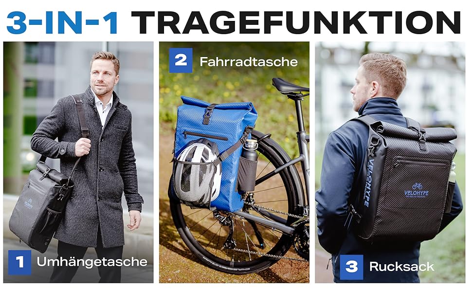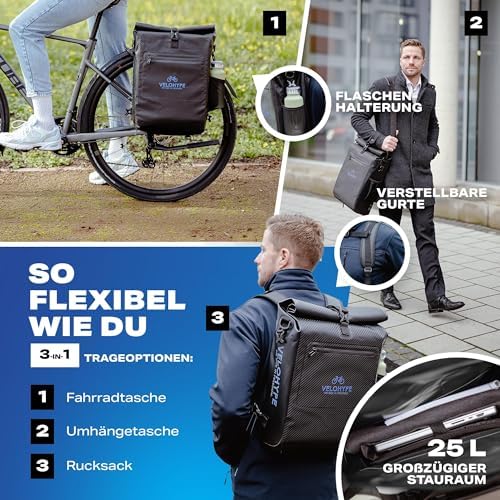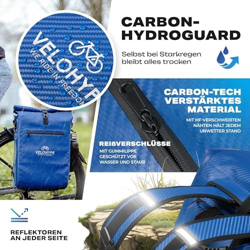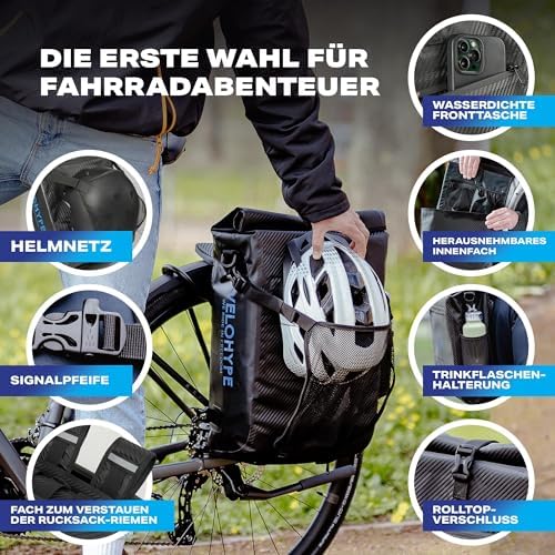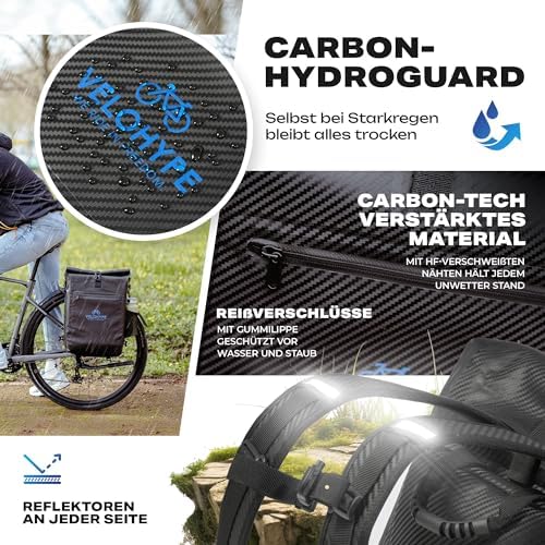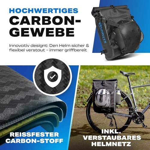 3in1 Fahrradtasche Gepäckträger 25L wasserdicht & reflektierend | Carbon-Hydroguard für Rucksack & Helmnetz