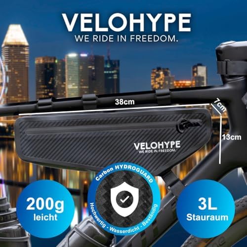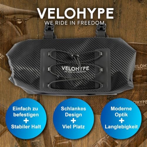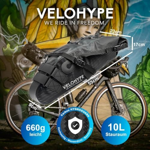 Unsere Tasche besteht aus hochwertigem Carbon-Hydroguard Material mit hochfrequenz-verschweißten Nähten, die gewährleisten, dass Ihre Wertsachen immer trocken bleiben. Egal, ob es regnet oder Sie durch spritzendes Wasser fahren – Ihre persönlichen Gegenstände bleiben geschützt vor Nässe und Beschädigungen.
