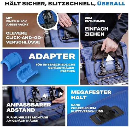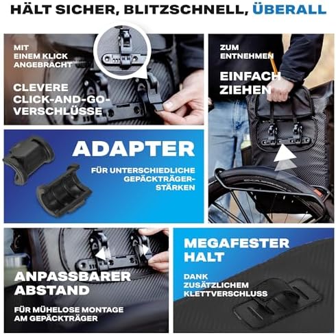 - Benutzerfreundliche Montage: Click-and-Go-Verschlüsse ermöglichen eine schnelle und einfache Handhabung, ideal für unterwegs.