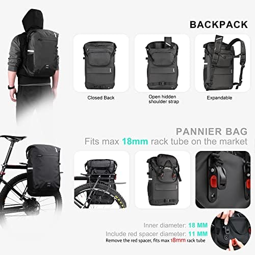 BAIGIO 3-in-1 Multifunktions Fahrradtasche – Wasserdichte Gepäckträgertasche mit Helmnetz für Reisen und Alltag, 22-25L
