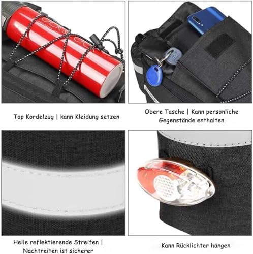 Mit einer Gesamtgröße von 38 * 16 * 15,5 cm bietet diese Tasche ausreichend Platz, um alles Notwendige zu transportieren. Eine elastische Bungee-Schnur auf der Oberseite sorgt dafür, dass Ihre Kleidung und Karten sicher fixiert werden. Darüber hinaus ermöglicht die offene Rückentasche mit Gummizug eine einfache und sichere Aufbewahrung Ihrer Wasserflasche oder anderer wichtiger Utensilien wie Reparaturwerkzeuge und kleiner Pumpen.