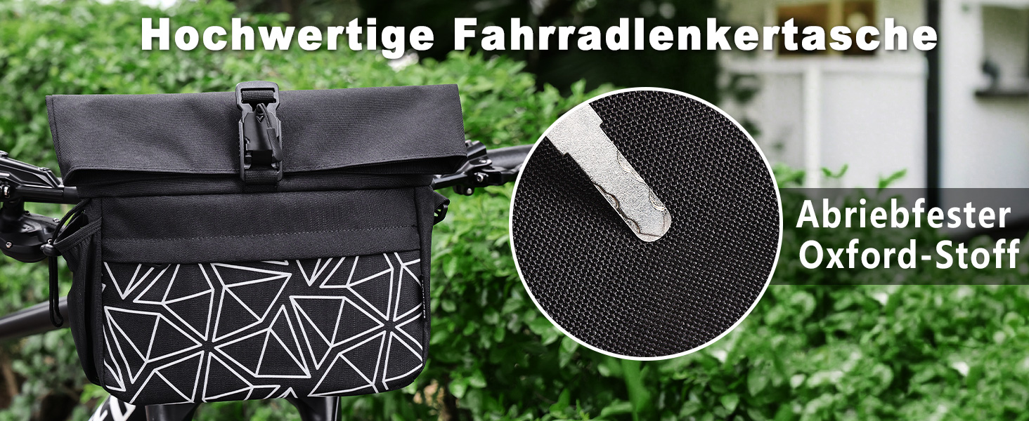Gefertigt aus hochwertigem Oxford-Gewebe, ist diese Fahrradtasche sowohl robust als auch wasserabweisend. Die strapazierfähige Beschaffenheit bietet einen zuverlässigen Schutz vor leichten Regenschauern, sodass Ihre Sachen immer gut aufgehoben sind. Zudem ist die praktische Fronttasche ideal für den schnellen Zugriff auf kleine Dinge. Keine lange Sucherei mehr – alles ist sofort zur Hand.