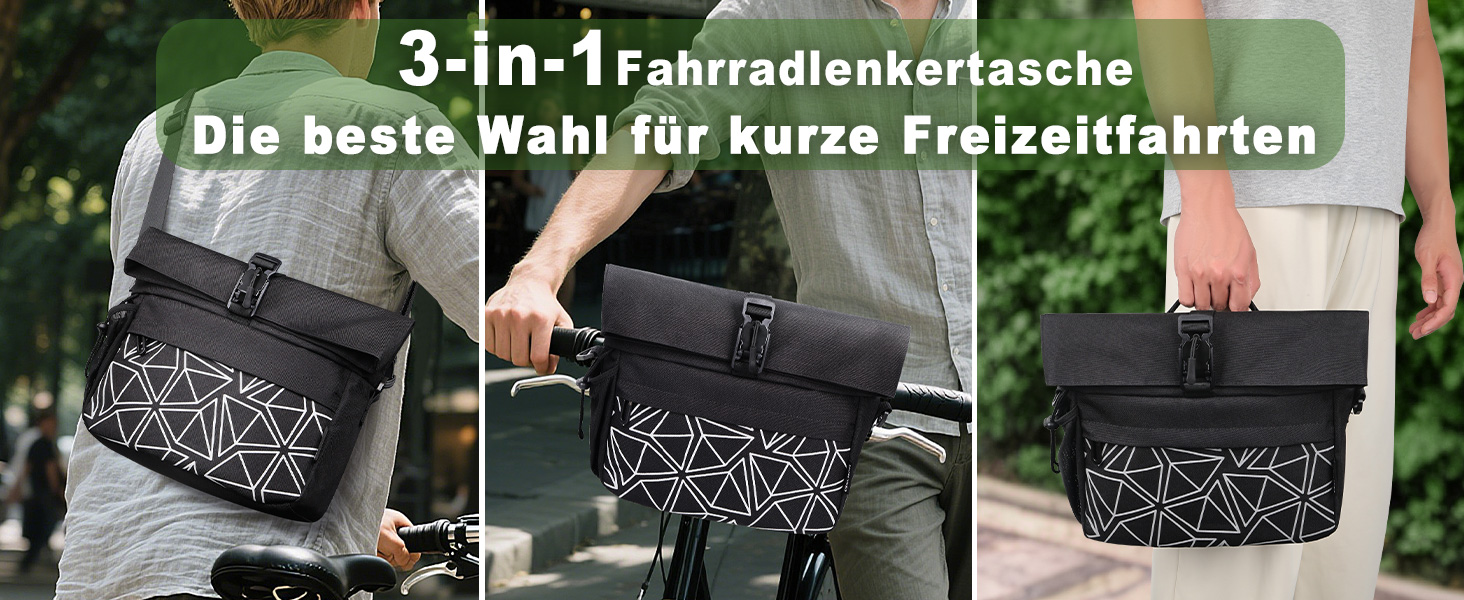Mit einem verstellbaren Trageriemen ausgestattet, kann die Lenkertasche auch als Umhängetasche oder Handtasche verwendet werden. Nach Ihrer Fahrradtour können Sie die Tasche einfach tragen, ohne umpacken zu müssen. So sind Sie jederzeit bereit für den nächsten Ausflug – ob per Fahrrad oder zu Fuß.