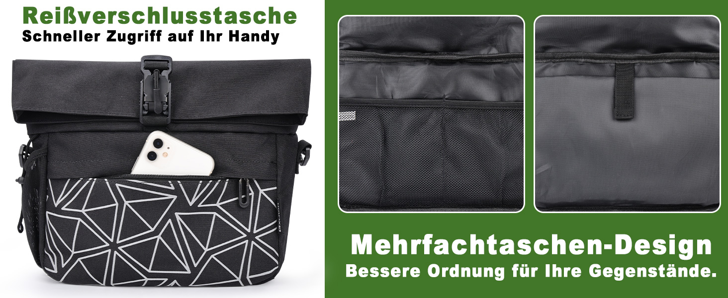 Die Lenkertasche ist die ideale Wahl für alle, die auf Funktionalität, Stil und Komfort Wert legen. Mit durchdachten Designelementen und einem großen Fassungsvermögen ist sie ein Must-have für jeden Fahrradliebhaber. Holen Sie sich diese vielseitige Fahrradtasche jetzt und machen Sie Ihre nächste Fahrt noch angenehmer!