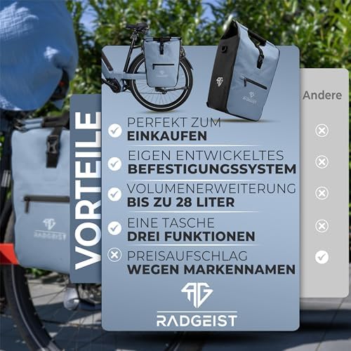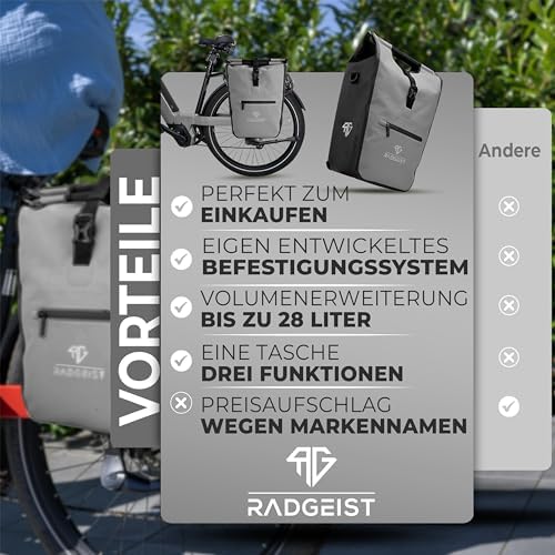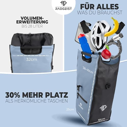 RADGEIST Fahrradtasche für Gepäckträger I Einkaufs- und Kühltasche für Fahrradtouren I 22-28 Liter VolumenRADGEIST Fahrradtasche für Gepäckträger I Einkaufs- und Kühltasche für Fahrradtouren I 22-28 Liter Volumen
