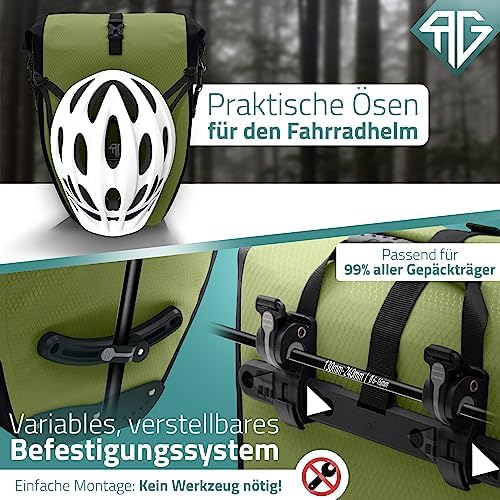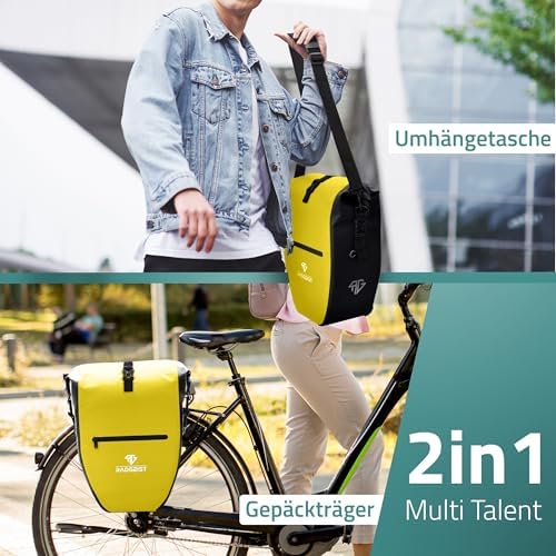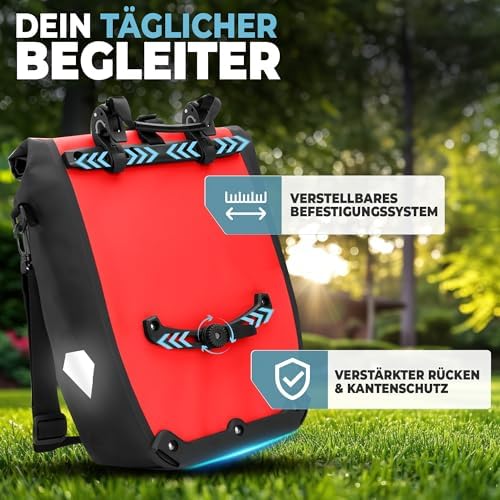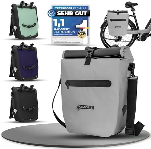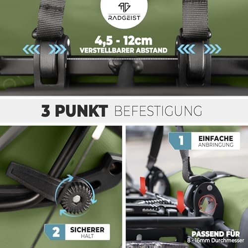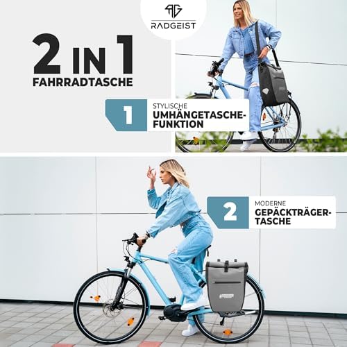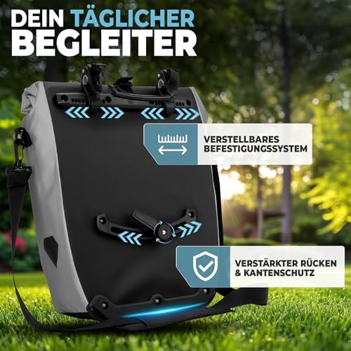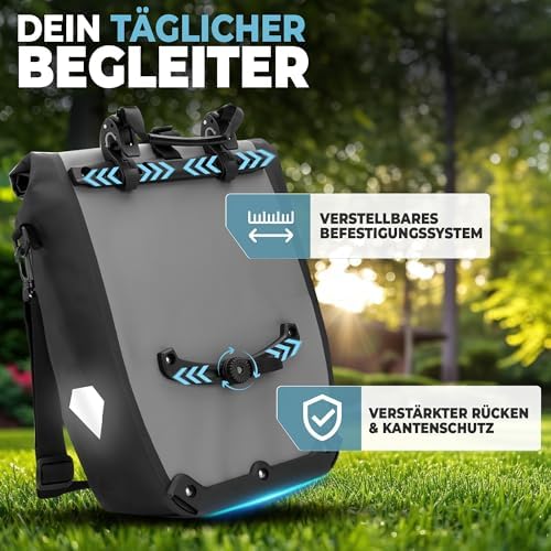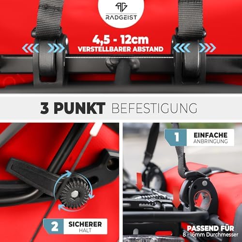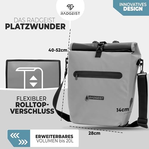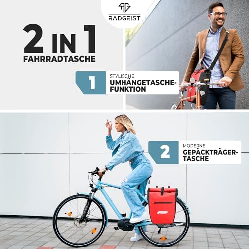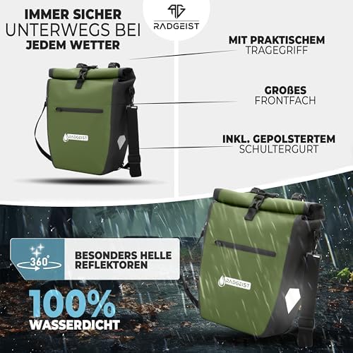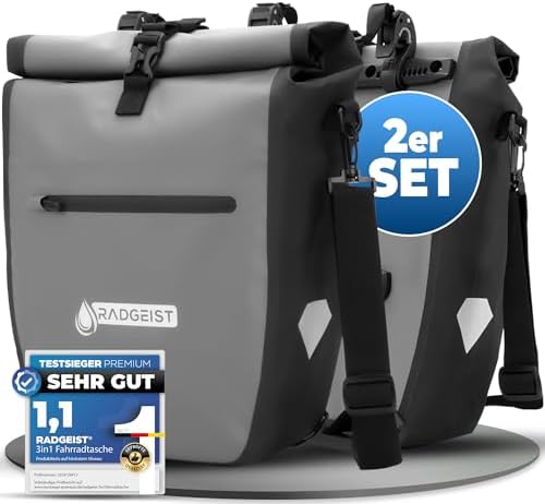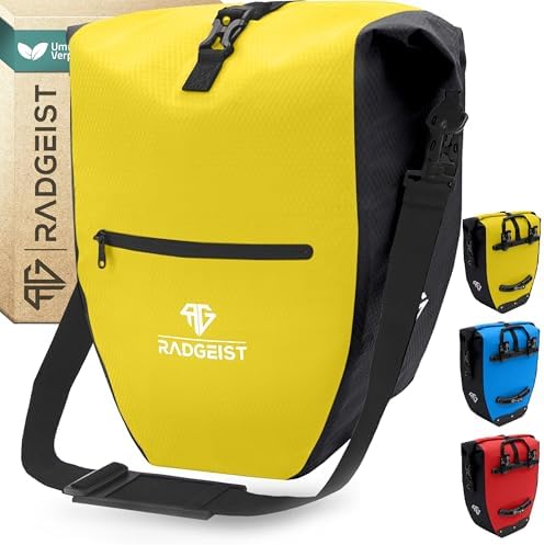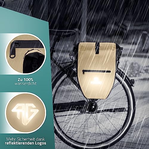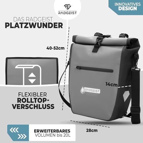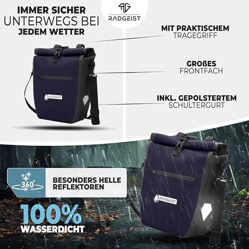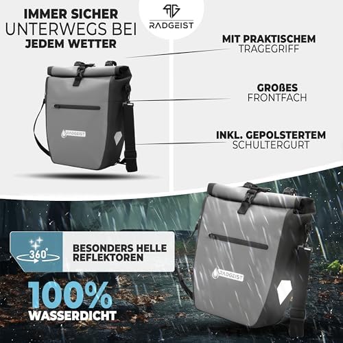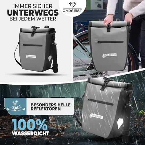 RADGEIST Fahrradtasche Gepäckträger - Wasserdichte Radtasche mit Reflektoren für sichere Ausflüge (28L, Schwarz)RADGEIST Fahrradtasche Gepäckträger – Wasserdichte Radtasche mit Reflektoren für sichere Ausflüge (28L, Schwarz)