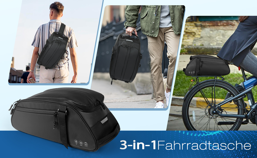 Diese vielseitige Gepäckträgertasche ist nicht nur eine Fahrradtasche, sondern kann auch als Handtasche oder Umhängetasche konvertiert werden. Dank des verstellbaren Schultergurts haben Sie die Freiheit, die Tasche überallhin mitzunehmen. Ob für Ihre Outdoor-Abenteuer oder den täglichen Gebrauch – die toptrek 3-in-1 Taschen bieten Flexibilität und Komfort in einem.