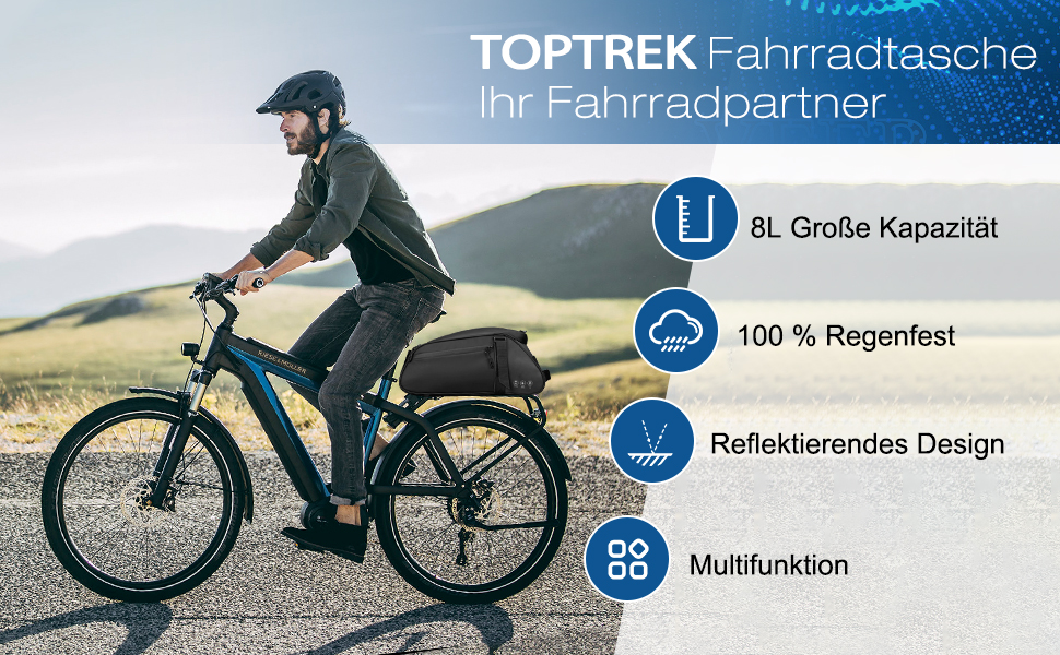 Die toptrek Gepäckträgertasche kombiniert Funktionalität, Stil und Sicherheit in einem. Überzeugen Sie sich selbst von der Qualität und dem durchdachten Design, das Ihre Fahrradtouren bereichert und Ihren Alltag erleichtert. Gönnen Sie sich diese vielseitige Tasche und erleben Sie ein neues Fahrgefühl!