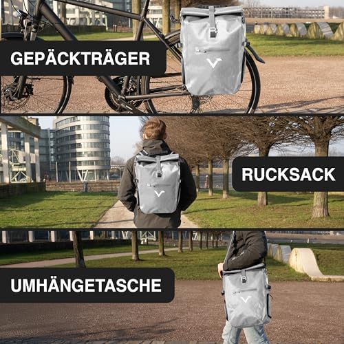 - Vielseitige Nutzung: Die ValkPro verwandelt sich mühelos von einer Gepäckträgertasche in einen Rucksack oder eine Umhängetasche, ideal für jede Gelegenheit.