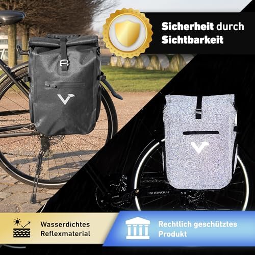 Valkental® 3in1 Fahrradtasche Pro – Original Tasche aus hochwertigem Nylon – 100% wasserdicht für Reisen & Radfahren – 2